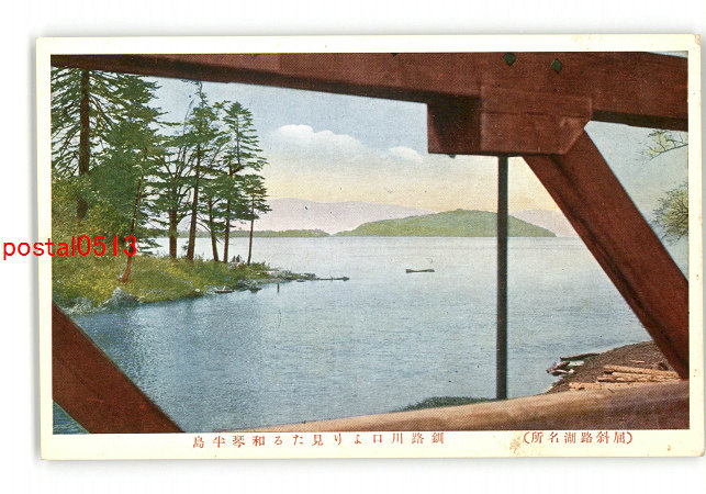 北海道 屈斜路湖名所 釧路川口より見たる和琴半島 *傷み有り