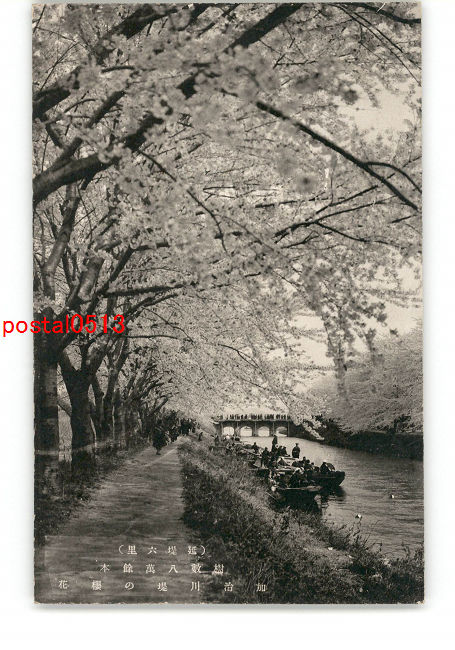 延堤6里 樹数8萬余本 加治川堤の桜花 *傷み有り