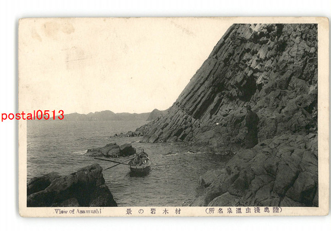 青森 陸奥浅虫温泉名所 材木岩の景 *傷み有り