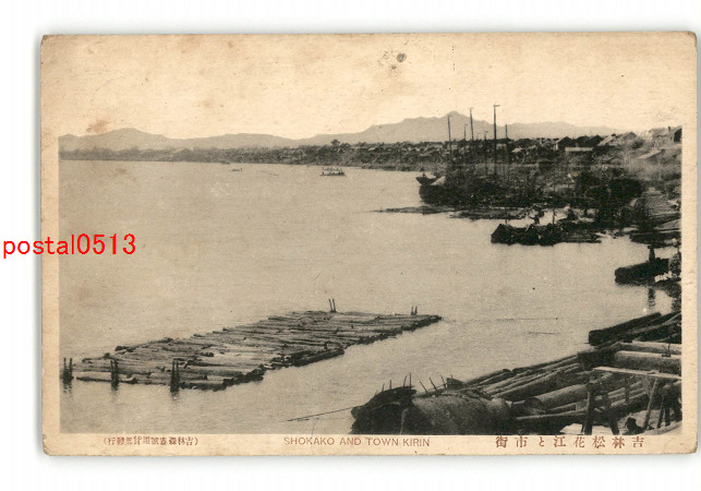 満州 吉林省松花江と市街 *傷み有り