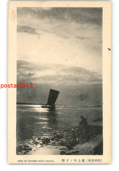 山形 酒田名所 最上川の夕照 *傷み有り