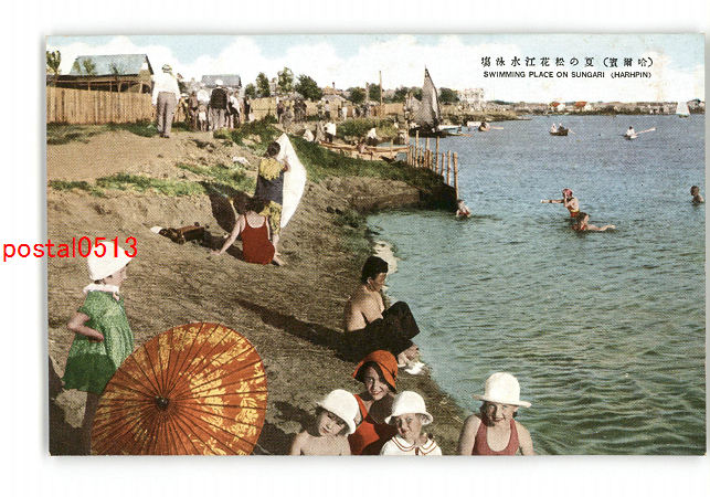 満州 哈爾浜 夏の松花江水泳場 *傷み有り