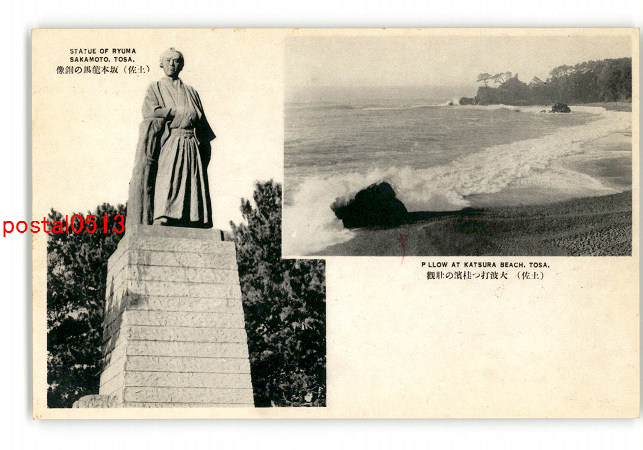 高知 土佐 大波打つ桂浜の壮観 土佐 坂本龍馬の銅像 *傷み有り