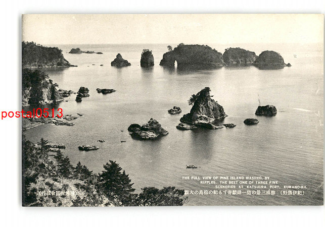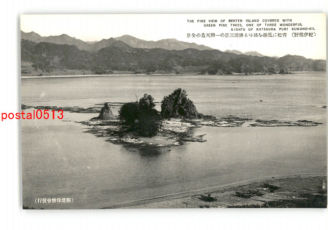 和歌山 紀伊熊野 青松に風趣を添ゆる勝浦三景の一弁天島の全景 *傷み有り