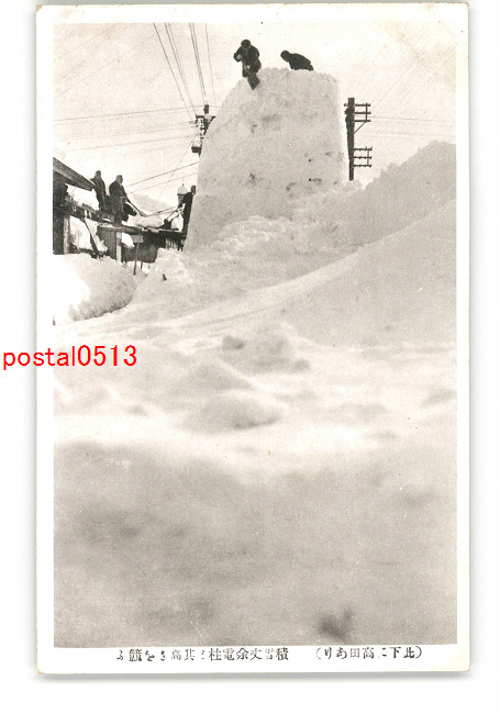 新潟 此下に高田あり 積雪丈余電柱とその高さを競ふ *傷み有り