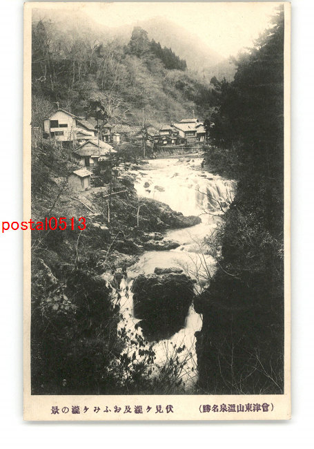 福島 会津東山温泉名勝 伏見ヶ滝及おふみヶ滝の景 *傷み有り