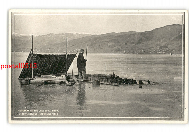 長野 信州諏訪名勝 諏訪湖上の漁夫 *傷み有り