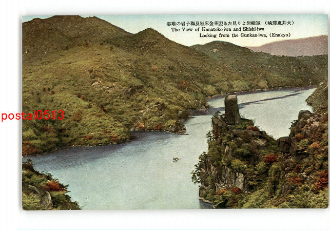 岐阜 大井恵那峡 軍艦岩より見たる盟主金床岩及獅子岩の雄姿 *傷み有り