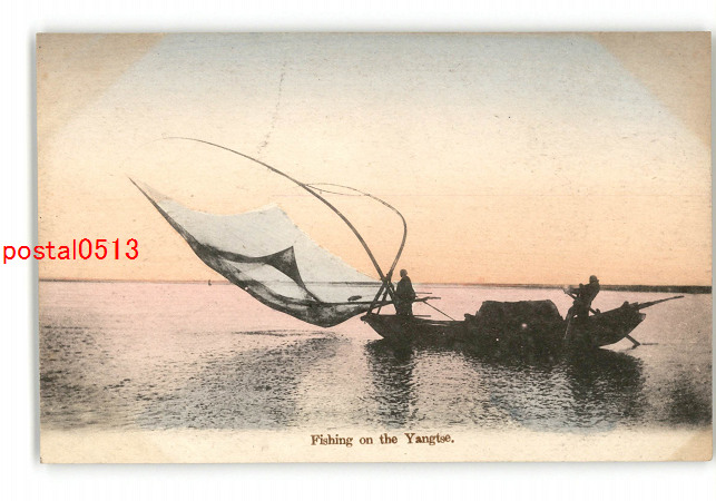 満州? 手彩色 Fishing on the Yangtse *傷み有り