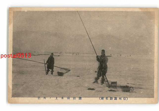 長野 信州諏訪名所 諏訪湖氷上の魚業 *傷み有り