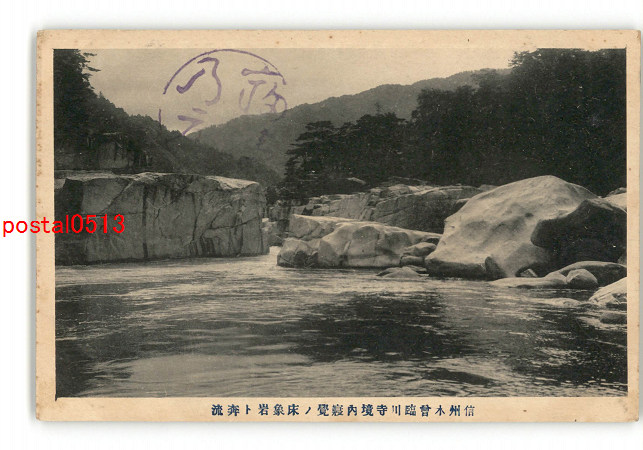 長野 信州木曽臨川寺境内寝覚の床象岩と奔流 *傷み有り