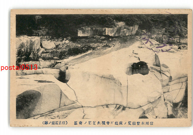 長野 信州木曽寝覚の床臨川寺境内釜岩の奇蹟 住古滝壺の跡 *傷み有り