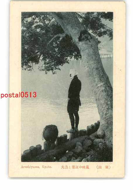 京都 嵐山 嵐峡の紅葉と漁夫 *傷み有り