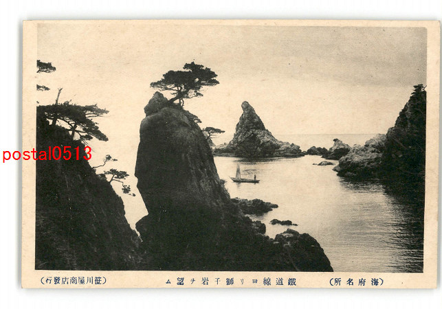 新潟 海府名所 鉄道線より獅子岩を望む *傷み有り