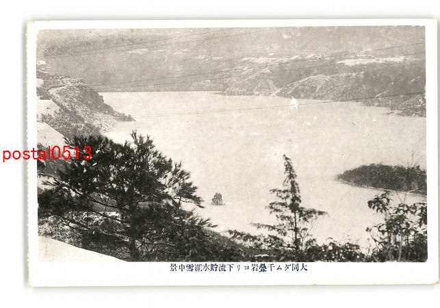 岐阜 大同ダム千畳岩より下流貯水湖雪中景 *傷み有り
