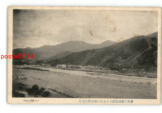 長野 信州千曲川清流より上山田温泉場を望む *傷み有り