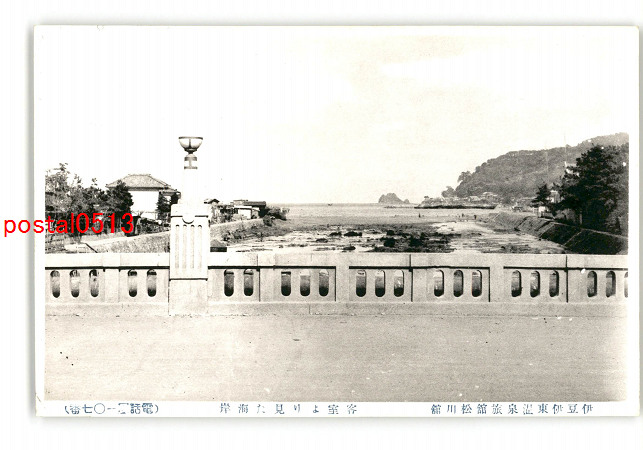 静岡 伊豆伊東温泉旅館松川館 客室より見た海岸 *傷み有り