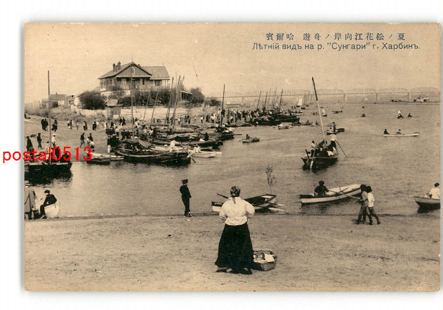 満州 夏の松花江向岸の舟遊 哈爾浜 *傷み有り