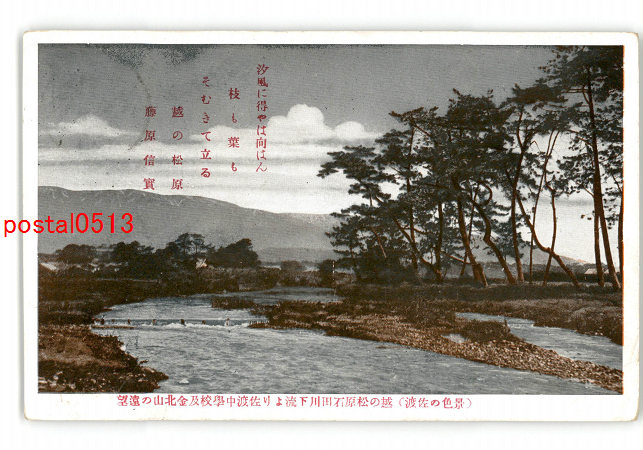 新潟 景色の佐渡 越の松原石田川下流より佐渡中学校及金北山の遠望 *エンタイア *傷み有り