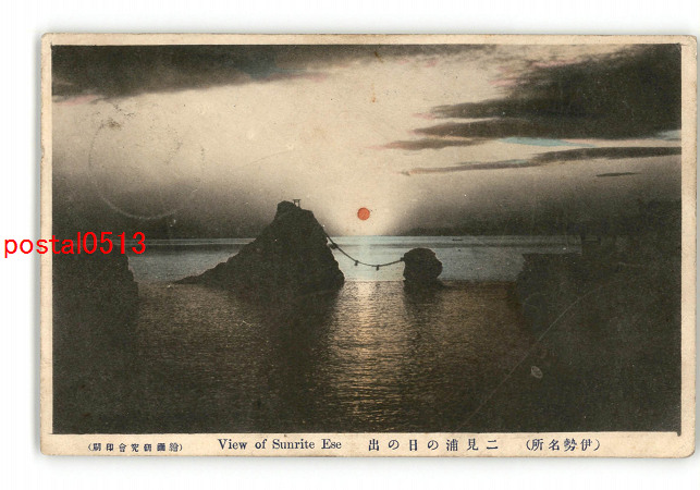 三重 手彩色 伊勢名所 二見浦の日の出 *エンタイア *傷み有り