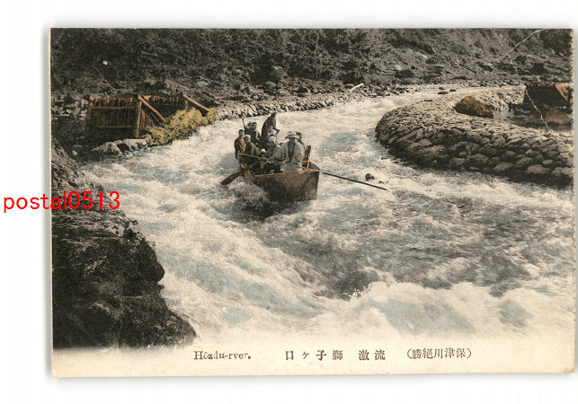 京都 手彩色 保津川絶勝 流激 獅子ヶ口 *傷み有り