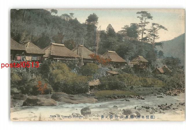 神奈川 手彩色 箱根名所 湯本三枚橋の景 *傷み有り