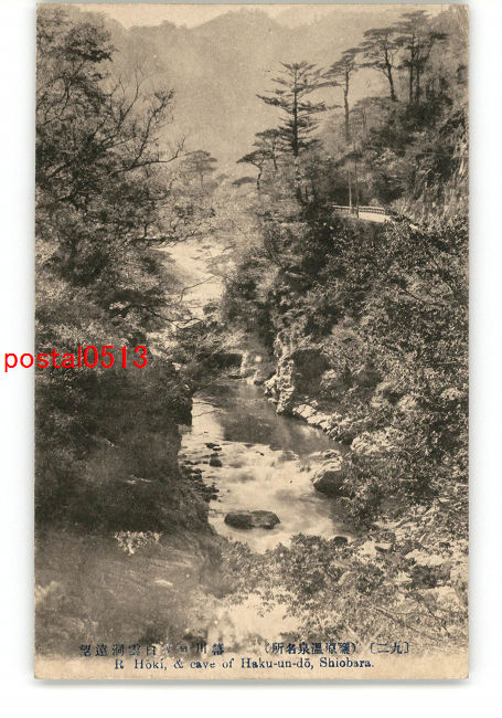 栃木 塩原温泉名所 箒川より白雲洞遠望 *傷み有り