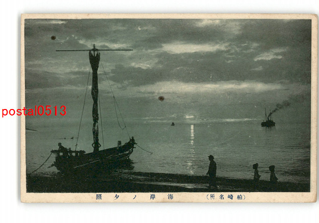 新潟 柏崎名所 海岸の夕照 *傷み有り
