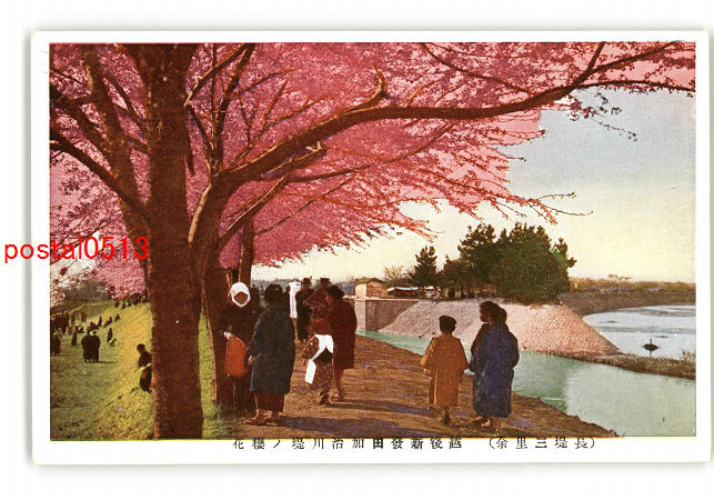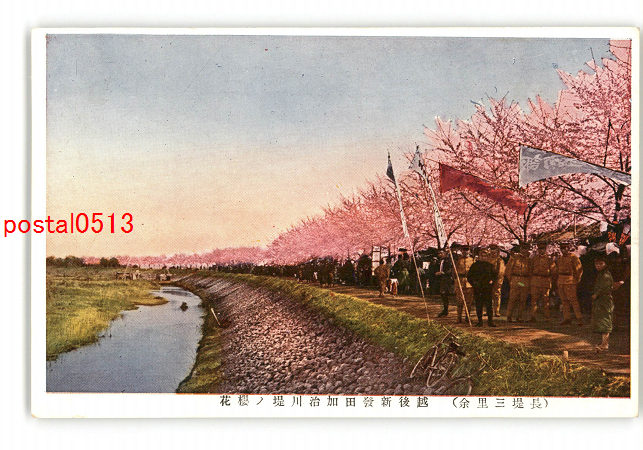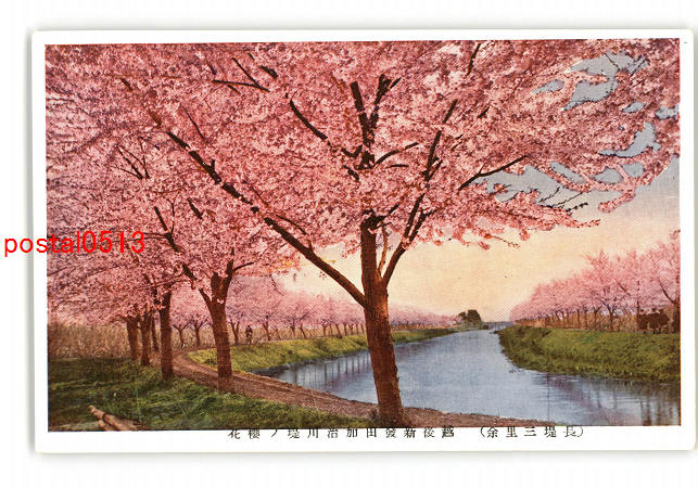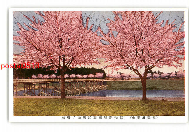 新潟 長堤三里余 越後新発田加治川堤の桜花 *傷み有り