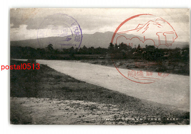 群馬 前橋名勝 利根川より赤城山の遠望 *傷み有り