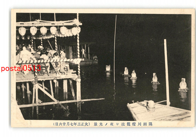 東京 墨田川灯籠流し夜の光景 大正3年7月26日 *傷み有り