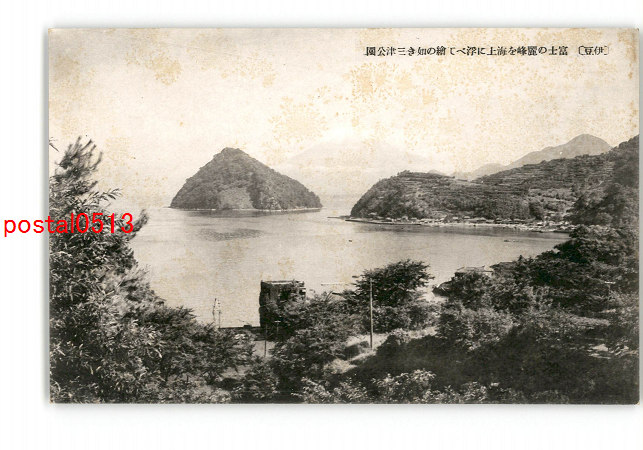 静岡 伊豆 富士の麓峰を海上に浮かて絵の如き三津公園 *傷み有り