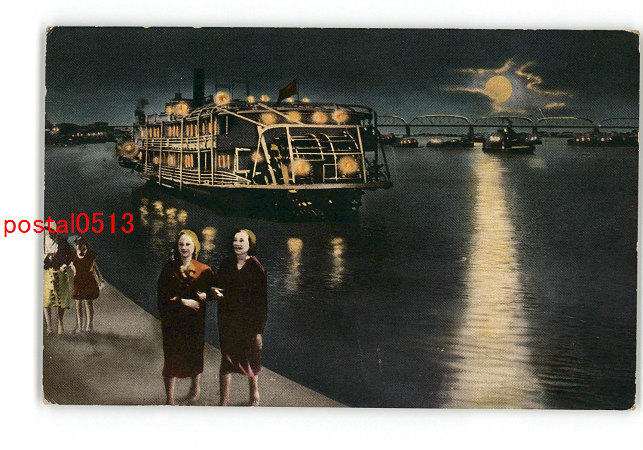 満州 ハルビン 夜の松花江 *傷み有り