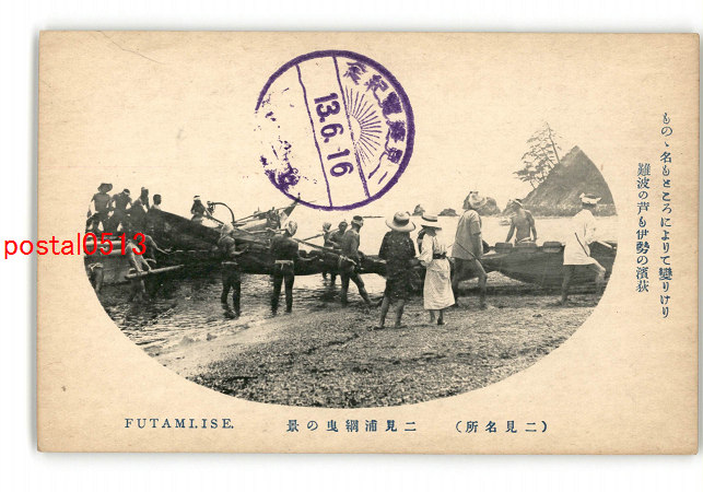 三重 二見名所 二見浦綱曳の景 *傷み有り