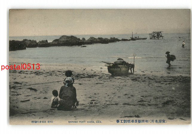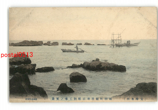 千葉 安房名所 和田町新吾港口堀割工事の実景 *傷み有り