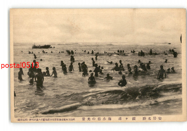 千葉 安房名勝 鏡ヶ浦 海水浴の光景 *傷み有り