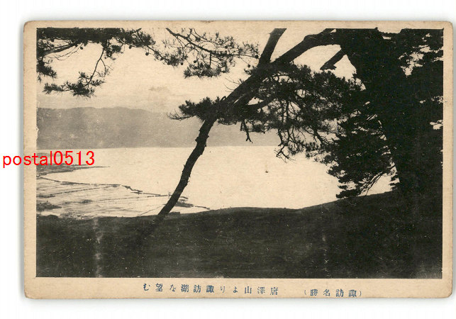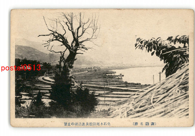 長野 諏訪名勝 化石木尾掛松及諏訪湖の遠望 *傷み有り
