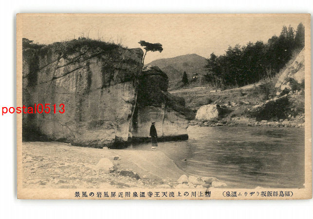 福島 飯坂ラヂウム温泉 摺上川の上流天王寺温泉付近屏風岩の風景 *傷み有り