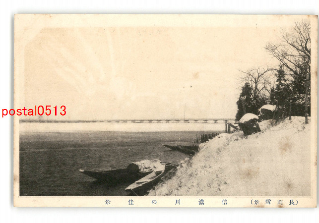 新潟 長岡雪景 信濃川の佳景 *傷み有り