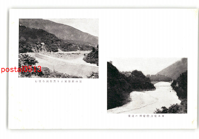 冨山 日本電力発電所の遠望 富山館客室より黒部川を望む *傷み有り