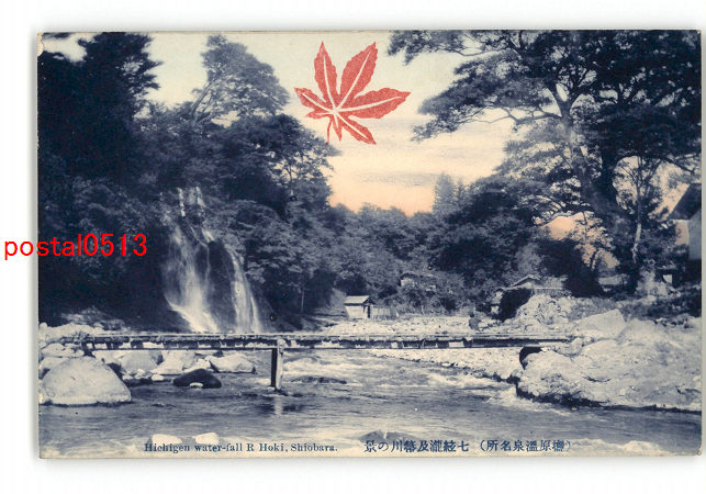 栃木 塩原温泉名所 七弦滝及箒川の景 *傷み有り