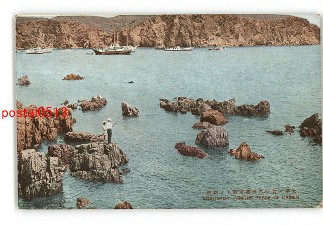 満州 大連の名所老虎灘奇岩上の釣魚 *傷み有り