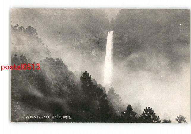 和歌山 紀伊熊野 雲霧に煙る那智御滝 *傷み有り
