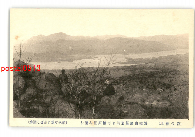 福島 岩代会津 磐梯山屏風岩前より檜原湖を望む 噴火の為に生ぜし湖水 *傷み有り