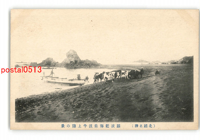 新潟 北越名勝 鯨波近海佐渡牛上陸の景 *傷み有り