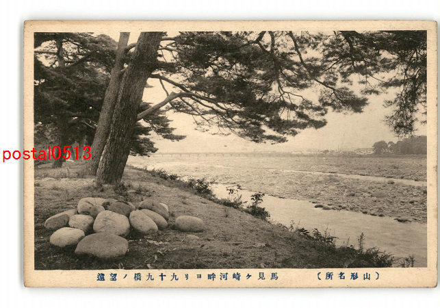 山形 山形名所 馬見ヶ崎河畔より九十九橋の望遠 *傷み有り