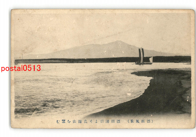 山形 酒田風景 酒田港口より鳥海山を望む *傷み有り