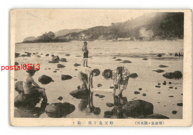 山形 羽前鼠ヶ関名所 弁天島子供の取り *傷み有り