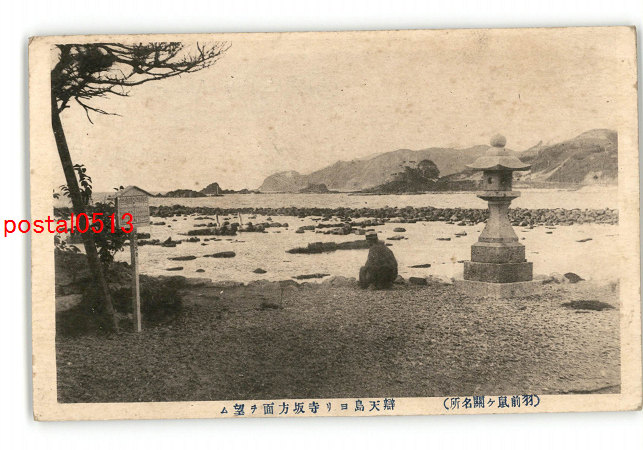 山形 羽前鼠ヶ関名所 弁天島より寺坂方面を望む *傷み有り