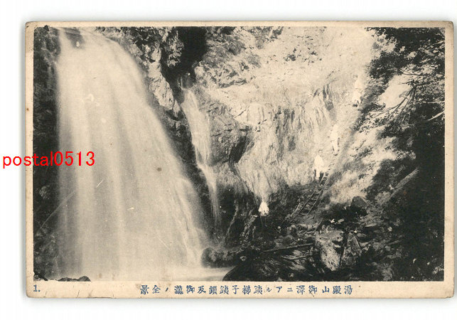 山形 湯殿山御沢にある銕梯子銕鎖及御滝の全景 *傷み有り